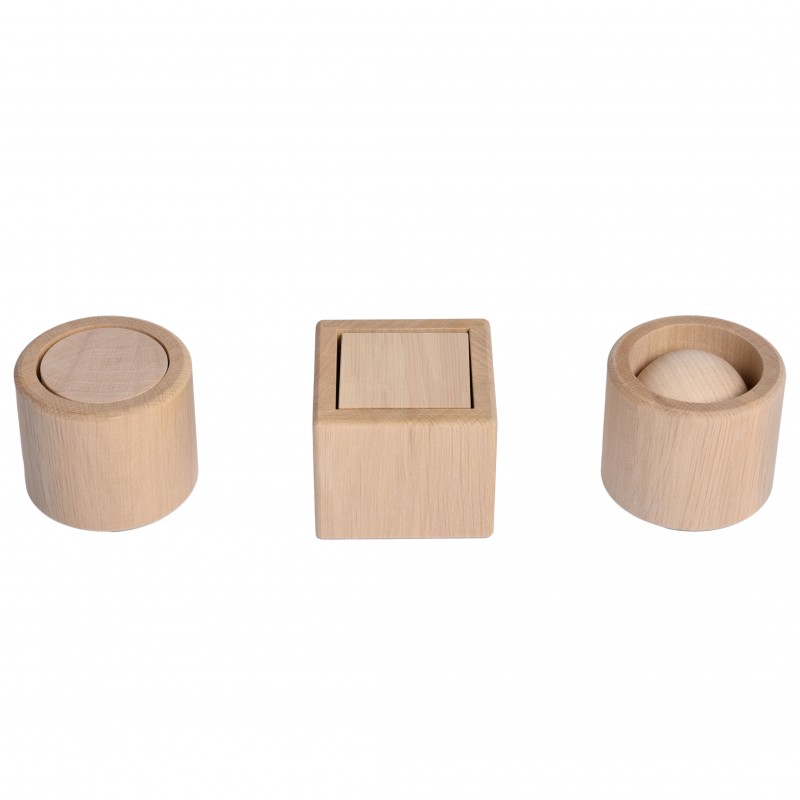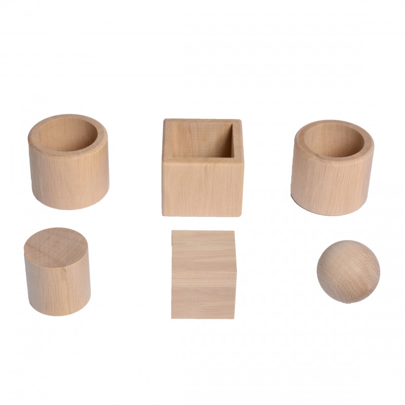 Кубик, циліндр, кулька в коробці – цей класичний матеріал за відомою методикою М. Монтессорі вчить працювати одночасно обома руками, чудово розвиває координацію та мілку моторику. Зроблено з натурального дерева, не пофарбовано.