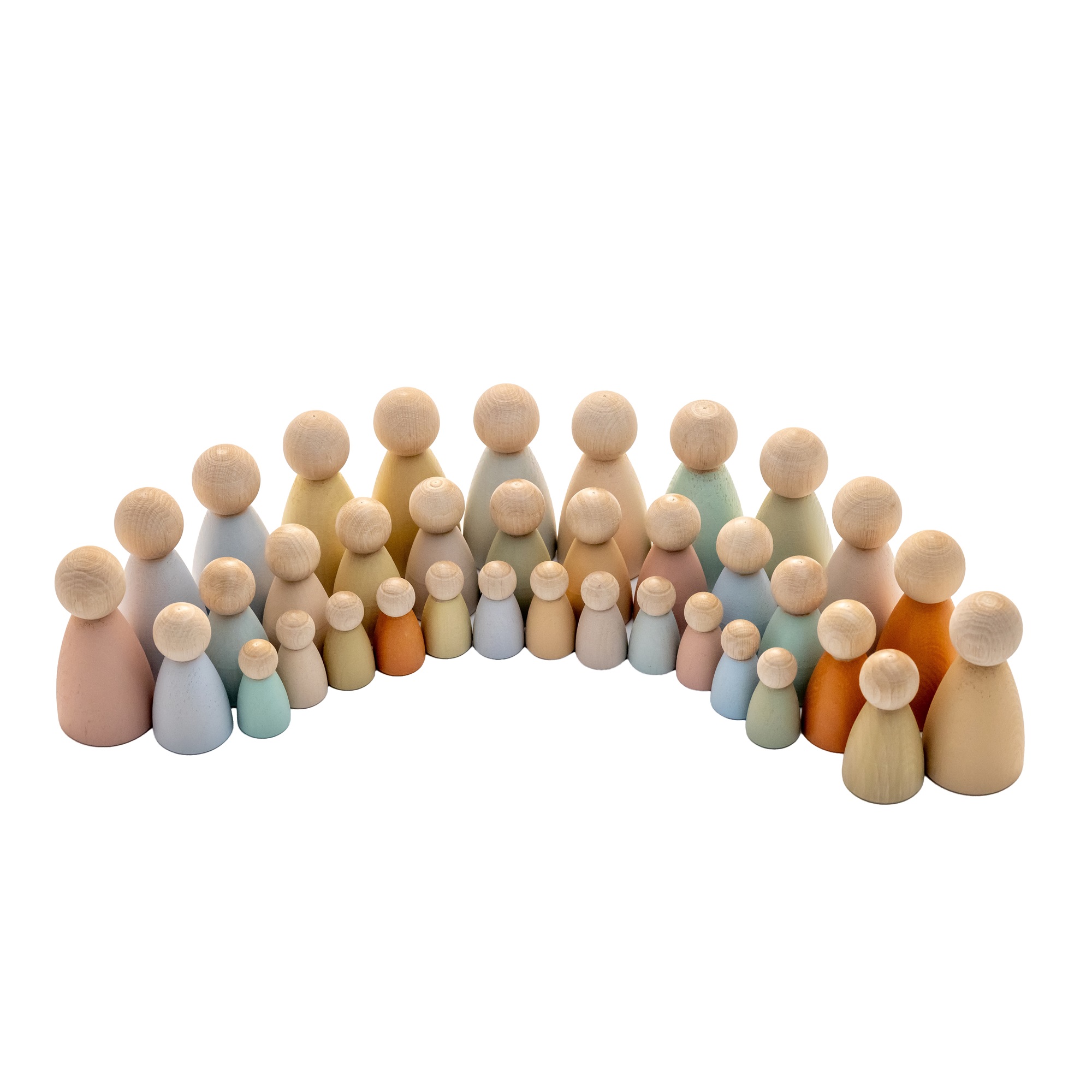 Дерев’яні чоловічки – чудовий набір, яким можливо гратися самостійно, або приєднувати до інших ігор . В наборі 36 фігурок людей трьох розмірів: 4см, 6см та 8см. Фігурки пофарбовано безпечними фарбами в пастельних тонах руками. Іграшкові деревʼяні фігурки людей допоможуть вашим дітям навчитися будувати відносини та програвати різні сімейні, колективні ситуації. Такий ігровий комплект може використовуватись у роботі логопедів, методистів та психологів, а також у реабілітаційних центрах та інклюзивних класах. Фігурки мають зручні, ергономічні для маленьких дитячих ручок розміри. Відповідає концепціі Вальдорфськоі освіти.