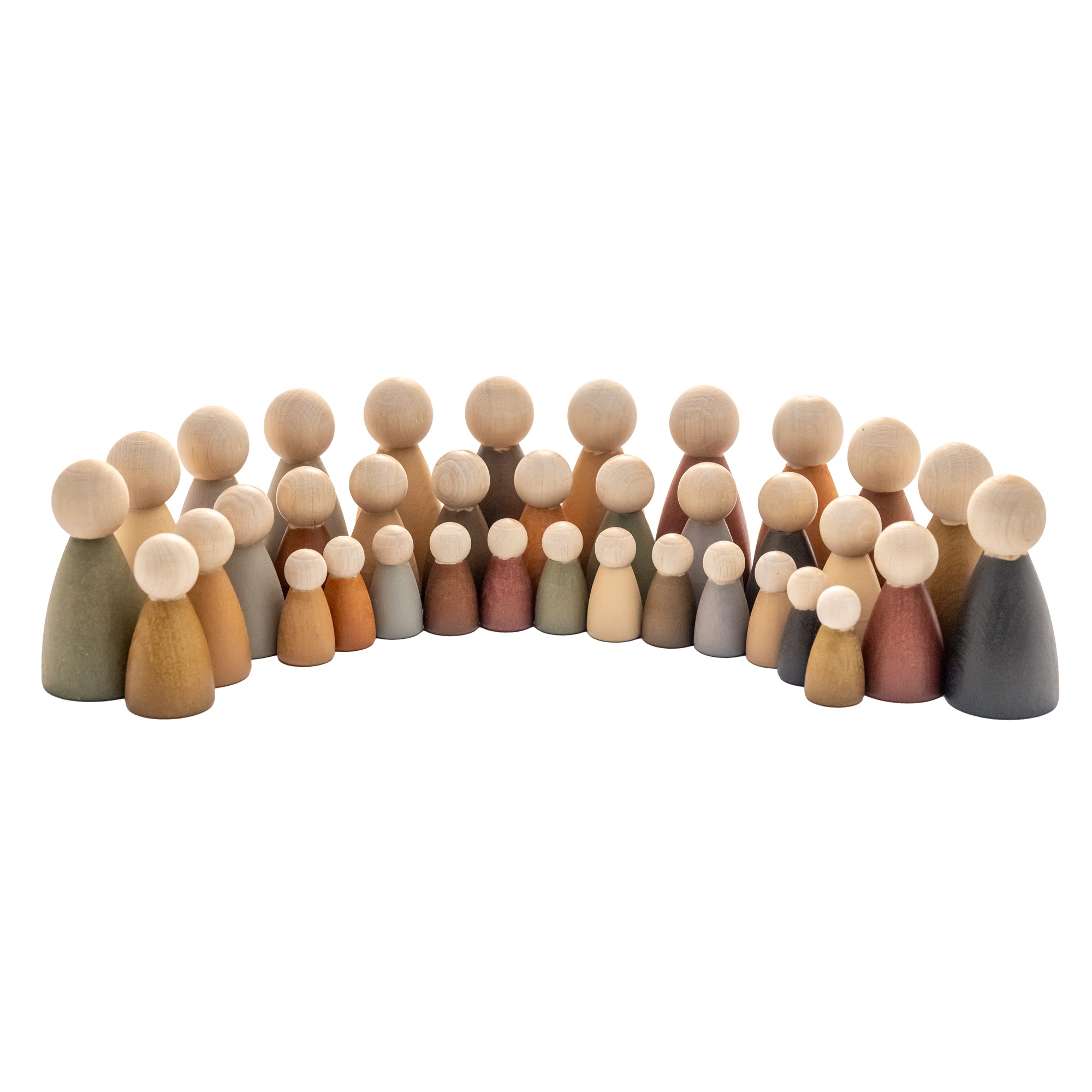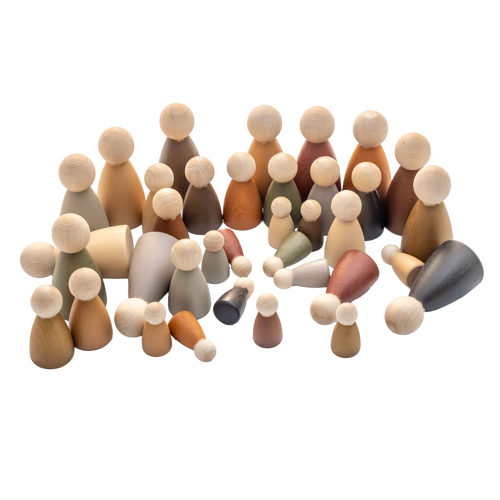 Дерев’яні чоловічки – чудовий набір, яким можливо гратися самостійно, або приєднувати до інших ігор . В наборі 36 фігурок людей  трьох розмірів: 4см, 6см та 8см. Фігурки пофарбовано безпечними фарбами в земельних тонах руками. Іграшкові деревʼяні фігурки людей допоможуть вашим дітям навчитися будувати відносини та програвати різні сімейні, колективні ситуації. Такий ігровий комплект може використовуватись у роботі логопедів, методистів та психологів, а також у реабілітаційних центрах та інклюзивних класах. Фігурки мають зручні, ергономічні для маленьких дитячих ручок розміри. Відповідають концепціі Вальдорфськоі освіти