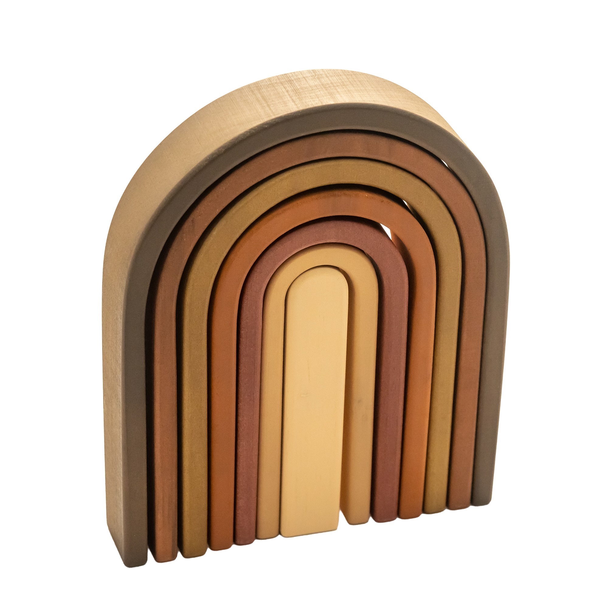 Радуга большая земельная— необыкновенно красивая серия современных игрушек, которая не оставит равнодушными детей и их родителей. Изготовлена из мягкой породы дерева, покрыта специальными материалами, которые не создают пленки на поверхности, благодаря чему игрушка на ощупь теплая и бархатистая. Окрашена в земельные тона, детали хорошо отшлифованы. Соответствует концепции Вальдорфского образования.